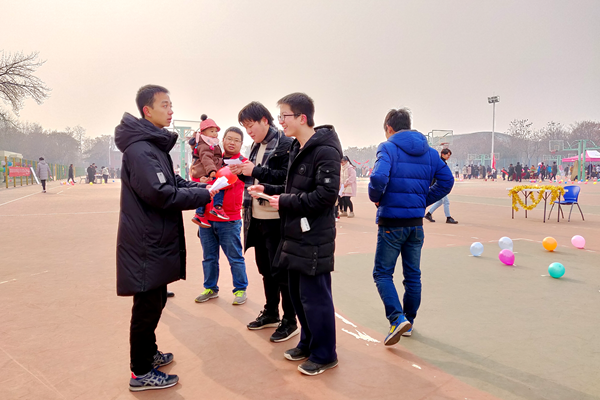 黄色导航 在本次活动中,精心准备了三个有趣且内涵丰富的环节:噼里啪啦迎新年、新年新目标、新年新方向。活动开始,有趣的游戏就吸引了不少师生,大家由开始的观望到后来的踊跃参与,激烈的比赛将每一位参赛者的积极性都充分调动起来,积极的参赛者们将现场气氛推向了高潮,场下同学的加油鼓励更给寒冷冬天增加了一丝温暖,使得冬日的篮球场中充满朝气与活力。三个游戏的设定内涵丰富,“噼里啪啦迎新年”使每位参赛者深入了解校史,加深了对学校的自豪感和热爱,“新年新目标”让参赛者们进一步了解改革开放四十年来我国取得的巨大成就,而“新年新方向”则帮助同学们体会改革开放以来自己身边的变化,三个游戏环环相扣,引导学生在欢乐游戏的同时不仅能缅怀过去,也能感受国家新气象,展望国家新未来,共筑中国梦想,奏响时代华章。