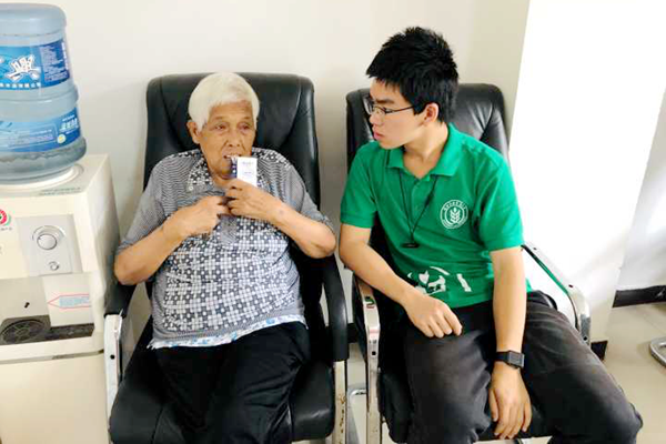 队员们和王爷爷交流并询问他的身体状况