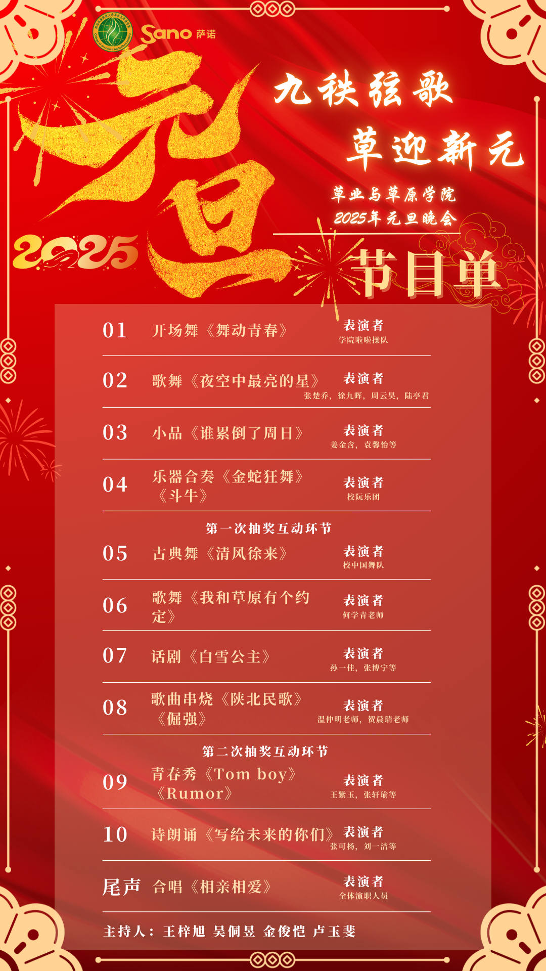 为了强化榜样引领,丰富师生校园文化生活,凝聚奋进力量,学院定于12月23日(星期一)19:00,在南校区绣山活动中心大厅举办“黄色导航 2024年学生表彰大会暨2025年元旦晚会”(节目单附后),晚会设有互动抽奖环节,敬请广大师生按时参加。