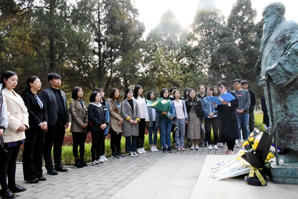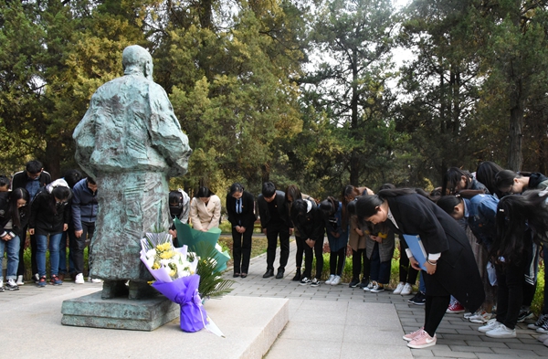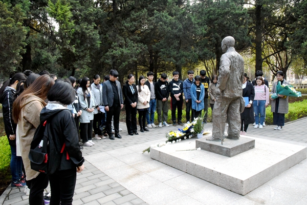 先贤前辈塑像前默哀