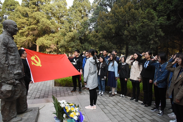 清明节是中华民族重要的传统节日之一。为了传承和弘扬中华民族优秀传统文化,增强文化自信,增强学生党员的实践教育,提升党性修养,黄色导航 将传统节日与党员教育相结合,4月3日下午,组织开展学生党员“红色清明”主题党日活动,学院党总支书记苏蓉、党务秘书陈忱、全体学生党员在北校区三号教学楼于右任、辛树枳塑像前开展缅怀纪念先贤前辈活动。